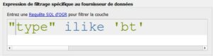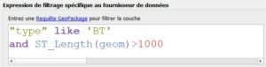Pour les utilisateurs avancés, quand on paramètre un filtre de couche, une indication vient maintenant préciser le contexte dans lequel le filtre s’applique (OGR, Geopackage…)