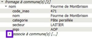 En interrogeant un objet, on peut suivre les liens dans les 2 sens (que l’objet soit parent ou enfant de la relation). Dans notre cas, on va pouvoir descendre à la table « associe » puis remonter à la table « fromage »…