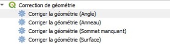 L’extension « Geometry Checker » est maintenant intégrée à la Boite à Outil de Qgis. Ces algorithmes ont été ajoutés aux catégories « Vérification de la Géométrie » et « Correction de la Géométrie »