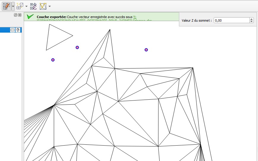 L’algorithme vérifie sur les arêtes adjacentes les conditions de Delaunay, si ces conditions ne sont pas respectées , Qgis modifie les faces pour adapter le MESH au nouveau vertex.