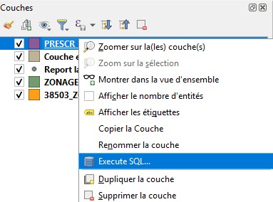 A partir de la version 3.42, les utilisateurs peuvent directement exécuter des requêtes SQL sur les couches dans l’explorateur de couche du projet grâce à une nouvelle option dans le menu contextuel.